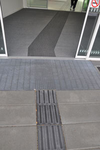 Las personas ciegas que tienen perros guía pueden tener problemas especiales con las rejillas metálicas, ya que las garras de los perros guía pueden atascarse en las rejillas metálicas y romperse. Por lo tanto, deberían buscarse otras soluciones.